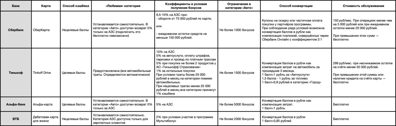 Чтобы проводить самостоятельный анализ было проще, мы собрали вместе предложения крупнейших банков, сравнили их и выяснили, какая карта предпочтительнее для автолюбителя.