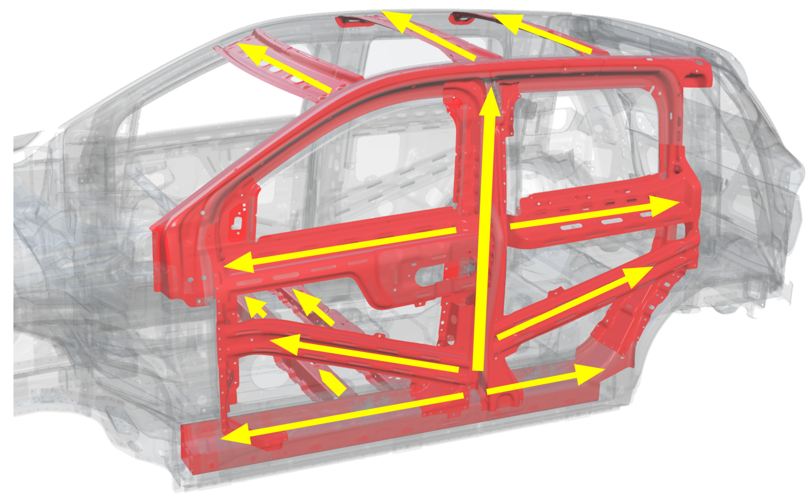 Это гарантирует высокую прочность кузова даже при боковом ударе за счёт равномерного распределения кинетической энергии по всей конструкции. Основную нагрузку в такой ситуации принимают на себя массивные пороги, в которые вмонтирован усиленный корпус тяговой батареи. Одна из главных задач, поставленных перед инженерами «Атома», — соответствие высоким стандартам безопасности по методологии C-NCAP и оценка не менее четырёх звезд.