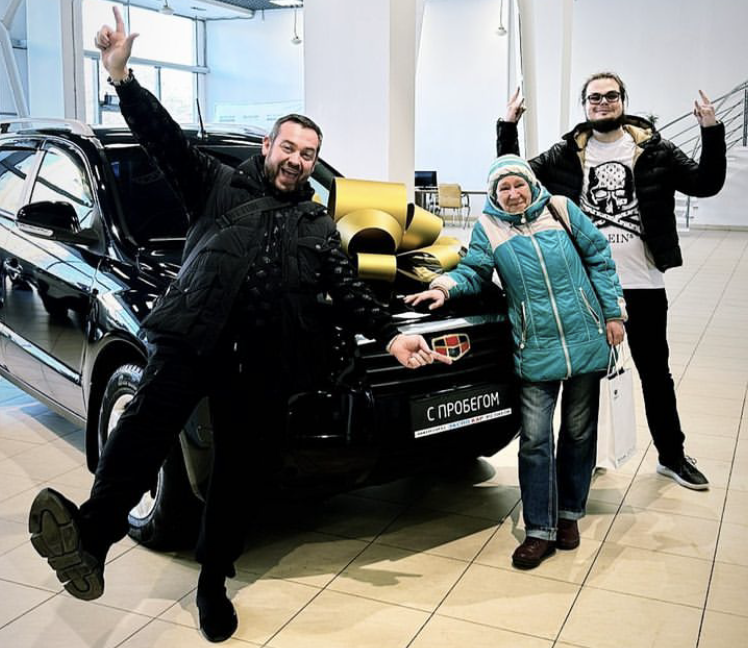 Эта инициатива понравилась и Саше Булкину, который сразу же встретился с Давидычем, чтобы найти для бабушки машину, купить её и сразу подарить. Спустя несколько часов пенсионерка и оба блогера приехали в автосалон — там женщине вручили ключи от кроссовера Geely Emgrand. Но на этом история не заканчивается: в скором времени авто отправится в детейлинг, где ему поменяют цвет с чёрного на песочный. Как отметила сама бабушка, этот оттенок ей очень нравится и именно такого цвета была её первая машина. Более того, Эрик договорился с сервисным центром о том, что теперь пенсионерка сможет отправлять к ним свои машины на обслуживание абсолютно бесплатно.