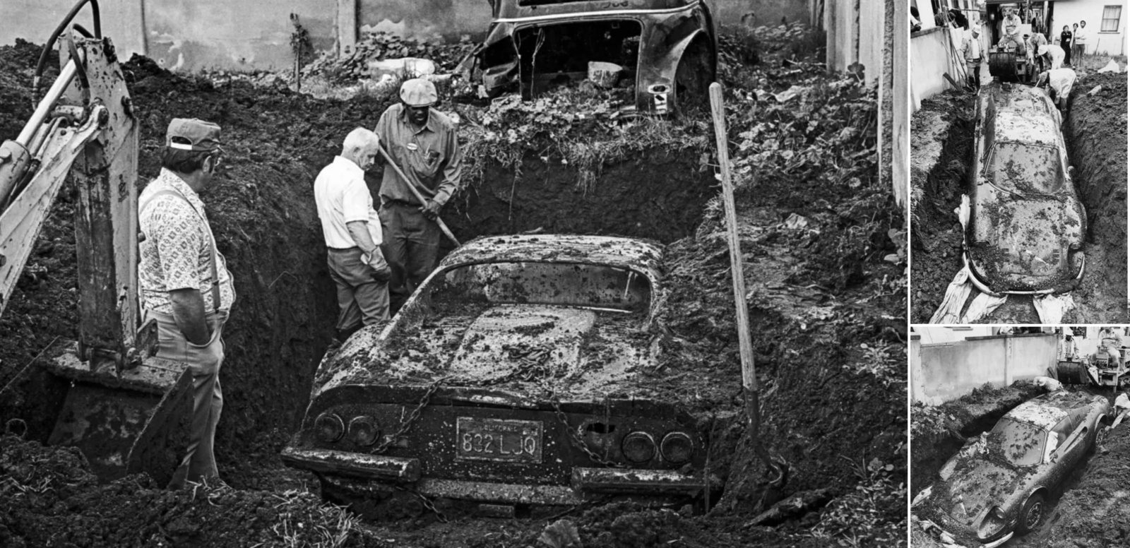 Необычная история о Ferrari, которую достали в буквальном смысле из-под земли: Dino 246 GTS 1974 года был обнаружен закопанным возле дома в Лос-Анджелесе. Заметили его местные мальчишки, которые играли во дворе и наткнулись на что-то железное. На место тут же прибыли полицейские, но ситуация прояснилась далеко не сразу. Стражи порядка отследили историю авто и вышли на его законного владельца — Розендо Круза. Он купил машину своей жене, но супруги не успели проехать на ней и 1000 километров, как автомобиль угнали.