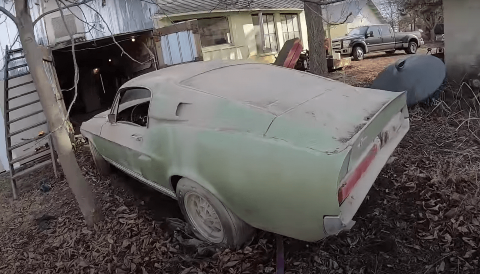 Отрада для глаз каждого любителя маслкаров — роскошный Shelby GT500. Он выпускался компанией Ford в 1965-1970 годах как одна из версий Mustang, доработанная Кэрроллом Шелби. По техническим характеристикам она превосходила обычный «Мустанг», да и внешне выглядела более внушительно. Непонятно, как такое великолепие можно было забросить в сарае на долгие годы, но, видимо, у владельца было каменное сердце.