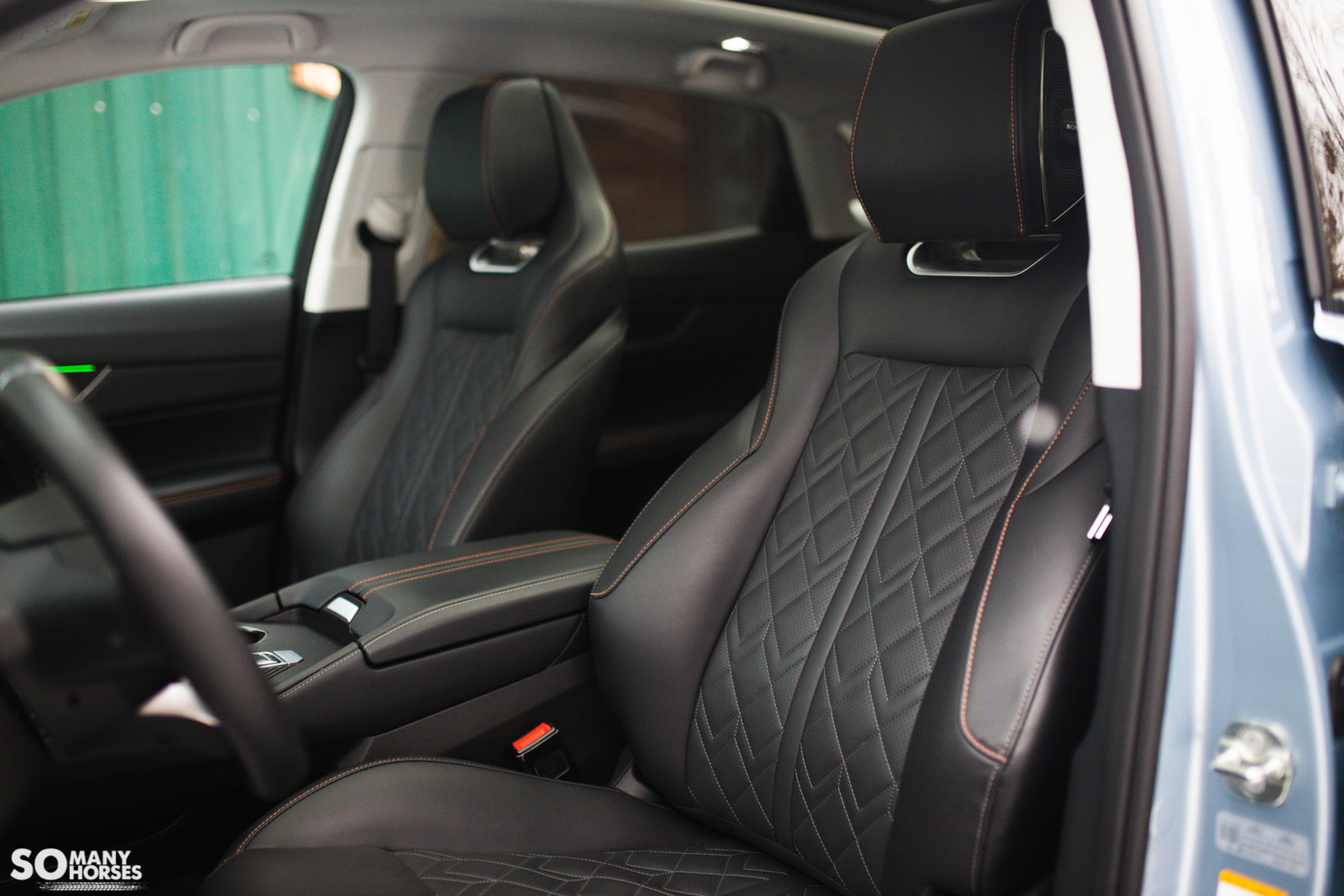 Само кресло достаточно хорошо регулируется, и, если вы проведёте за рулём даже несколько часов, ваша спина будет чувствовать себя вполне комфортно. Однако удивило отсутствие атмосферной подсветки для задних пассажиров. Она есть только спереди, но зато легко настраивается и предлагает большую палитру «красок» для выбора.