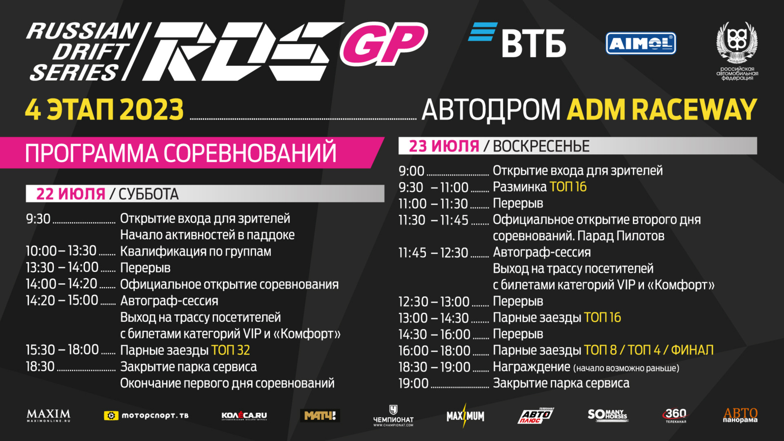 Прошлый этап RDS GP существенно повлиял на расклад сил в личном и командном зачётах. Сменился лидер в гонке среди чемпионов, а в сражении за звание сильнейшей команды идёт ожесточенная борьба между тремя коллективами. ADM Raceway открывает вторую половину сезона, и в такой серьезной битве за титул ценен будет каждый набранный балл.