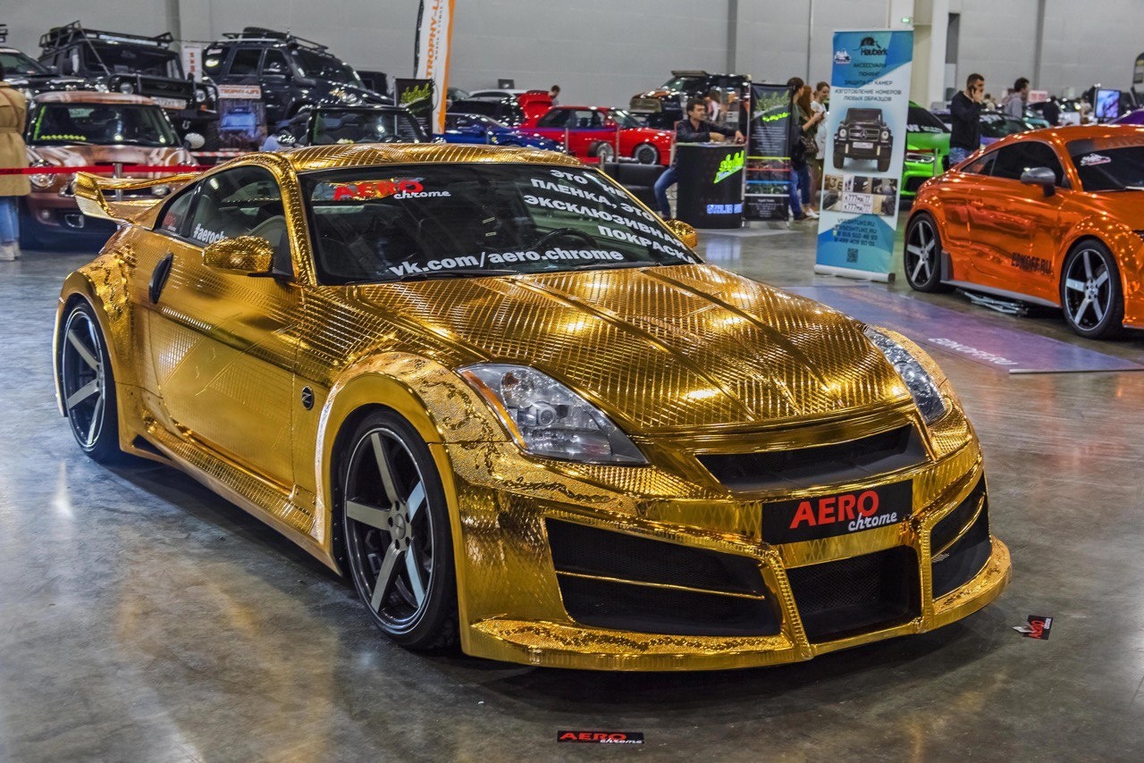 Далее появляется уже полноценный и успешный проект — Nissan 350Z из хромированного золота с изумительными узорами по всему кузову. Он строился четыре месяца: были куплены битый Nissan 350Z и обвес из стеклопластика к нему. Своими силами оперение подогнали под кузов, вручную сделали гравировку и серебрение хромом, а вишенкой на торте стало эксклюзивное окрашивание в золотой цвет. Своё признание «зетка» получила в 2016 году на Московском тюнинг-шоу, где заняла третье место в категории «Искусство на колёсах». Именно этот «Ниссан» и подтолкнул Максима к воплощению следующего шедевра и, как следствие, к созданию канала «Машинаторы».