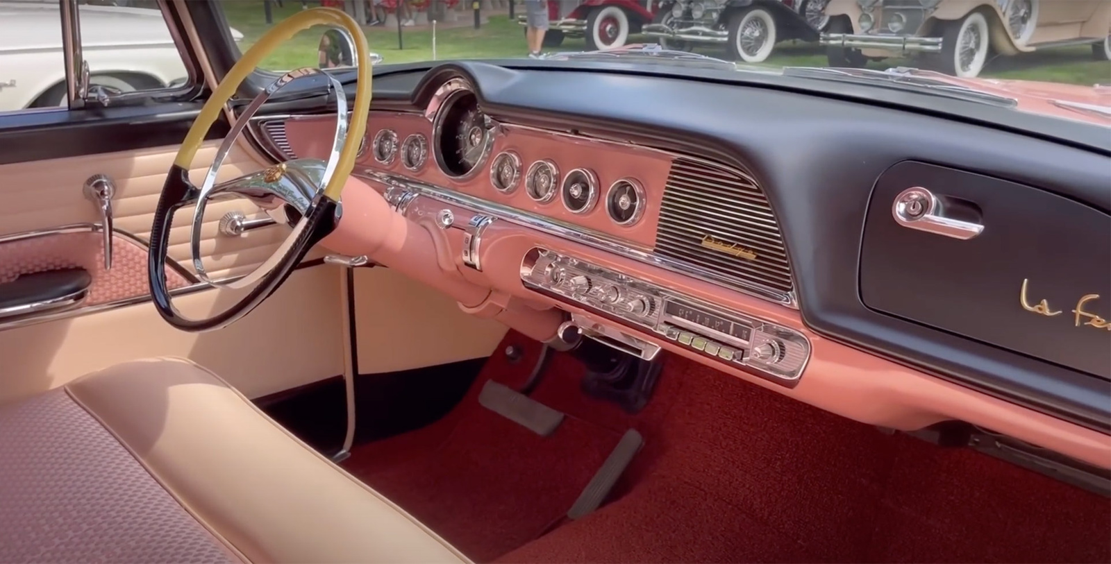 La Femme позиционировалась как «первая машина, созданная исключительно для женщин». За основу был взят Dodge Custom Royal Lancer. Выглядел автомобиль так, словно предназначался для Марго Робби из нашумевшего фильма «Барби»: розовый кузов, светло-розовая отделка салона из винила и ткани с узором в виде розовых бутонов и золотая надпись «La Femme» на бардачке. А чтобы повысить продажи, девушкам предлагали целый ассортимент аксессуаров: плащ, шляпу и зонтик на случай дождя, а также сумку от Evans c помадой, пудреницей, портсигаром, зажигалкой и кошельком. Вcё — в той же розово-золотистой цветовой гамме. Кстати, у каждого из этих предметов в машине был предусмотрен собственный отсек для хранения.