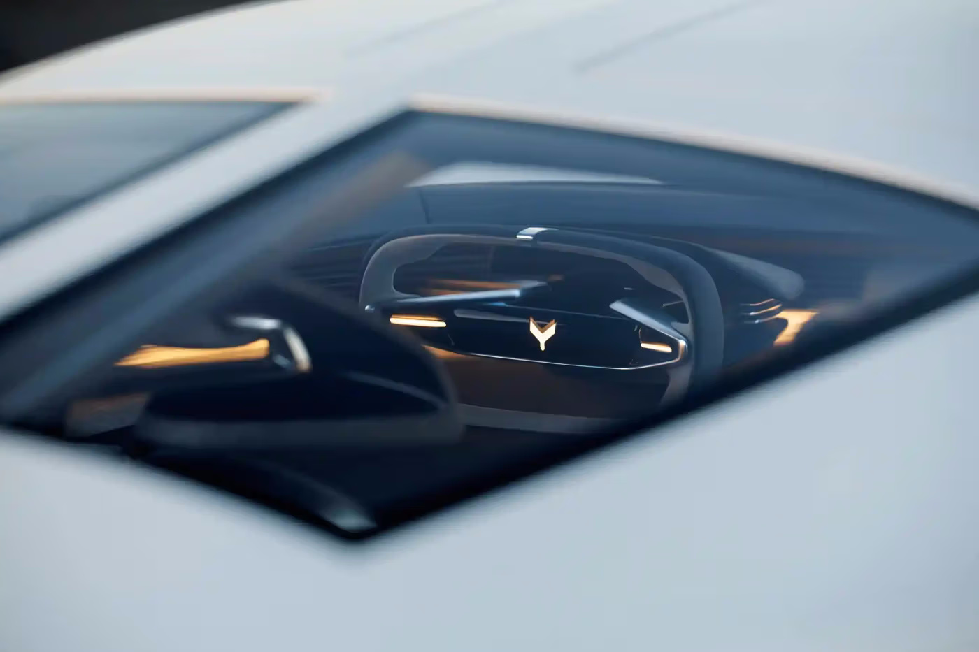 Что касается нового футуристичного Corvette EV, его внешность сочетает традиционные мотивы и инновации. Джулиан Томсон рассказал: «Одна из самых необычных деталей — технология Apex Vision. Это вертикальная центральная линия, отсылающая к Corvette Stingray 1963 года с "раздельным окном". Она не только визуально делит кузов, но и является несущим элементом, а ещё открывает панорамный обзор на дорогу».