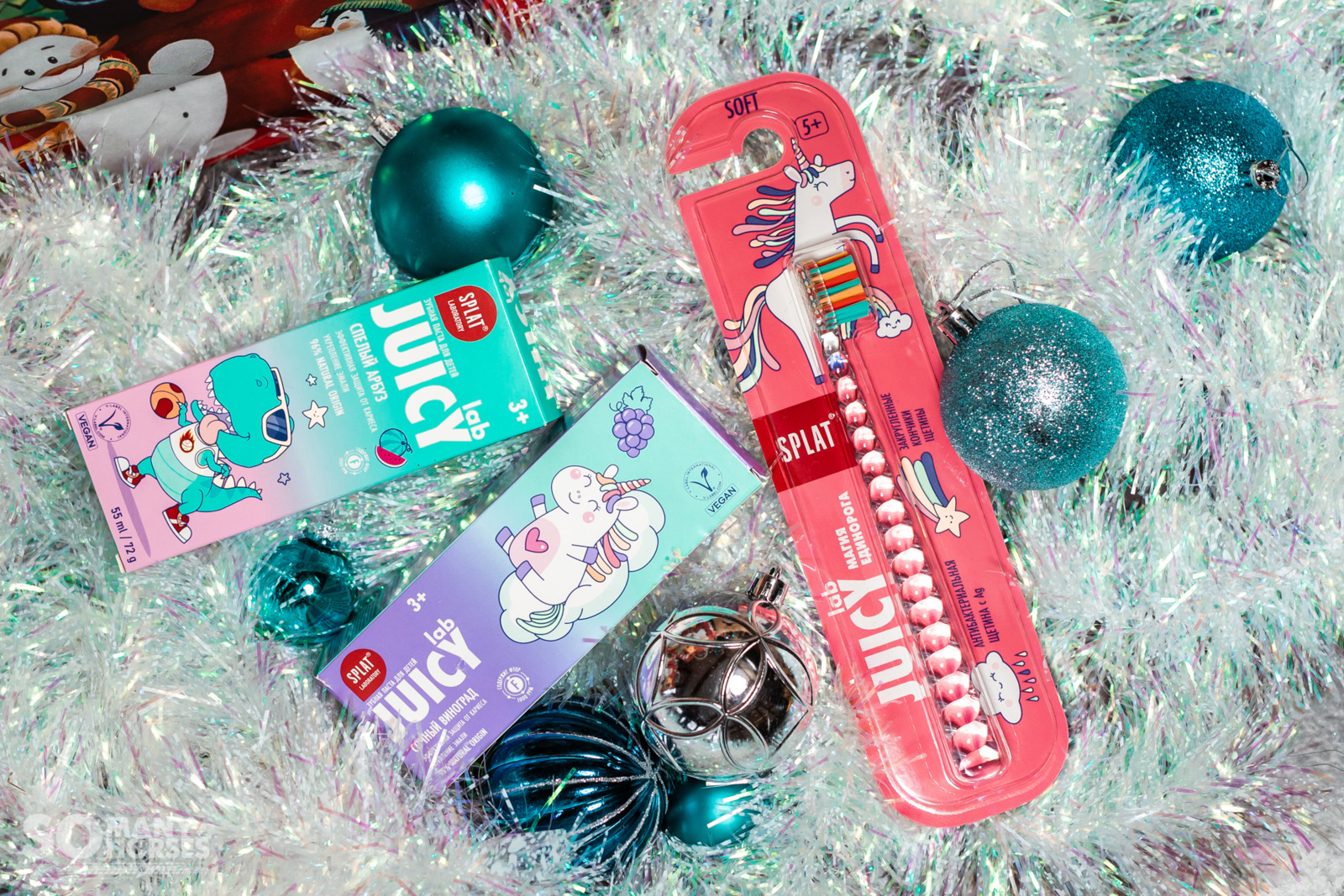 Самым маленьким также предлагаем дарить практичные подарки, потому что от бесконечных игрушек, кажется, порой устают даже дети. А тут и красиво, и вкусно, и полезно — зубные пасты и щётка от бренда Splat. Ароматы спелого арбуза и сочного винограда привьют любовь к чистке зубов даже тем, кто совсем не любит этого делать.