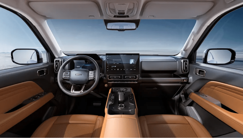 В салоне кроссовера установлены большой горизонтальный сенсорный экран мультимедиа, цифровая приборная панель, компактный «джойстик» коробки передач и уже ставшая традиционной «шайба» выбора режимов езды — их у машины семь, в том числе для грязи, песка и снега. Перед пассажиром появился мощный поручень (похоже, для поездок по серьёзному бездорожью), а центральный тоннель декорирован имитацией углепластика.