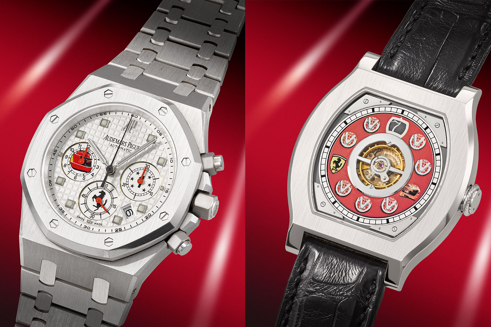 Самым дорогим лотом является модель F.P. Journe Vagabondage 1 Model 2004 года. Часы посвящены семи титулам Шумахера в Королевских гонках и подарены гонщику на Рождество бывшим генеральным директором Scuderia Ferrari Жаном Тодтом. Наручный аксессуар в платиновом корпусе украшен 18-каратным белым золотом и имеет красный циферблат, а также изображения логотипа Ferrari, гоночного шлема Шумахера и цифры 7. Он был продан за 1,5 миллиона долларов.