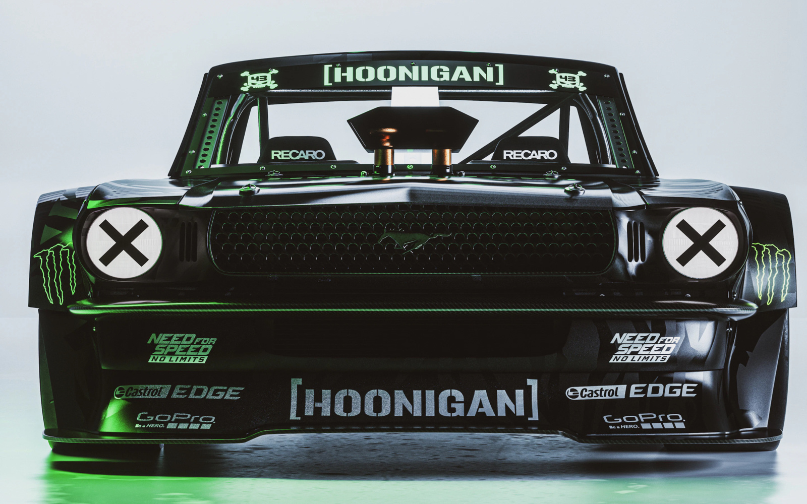 А теперь очередь дошла и до любимого ролика спортсмена. Седьмая глава снималась в Лос-Анджелесе, снова в партнёрстве с Need For Speed и была приурочена к выходу No Limits. Для этого видео собрали новую машину — кастомный Ford Mustang на базе шасси 1965 года. Пожалуй, это одно из самых узнаваемых творений Hoonigan, а заодно и самое яркое — в особо тёплых чувствах к этому авто позже признается пилот, назвав концепт наиболее весёлым в управлении. Над ним работали два года. Изначально под капотом был атмосферный мотор мощностью 845 л. с. В будущем родится ещё Hoonicorn: автомобиль на основе того же «Мустанга», но уже с парой турбин, «раздувающих» его до 1400 л. с. Внимательные зрители могут заметить, что в проезде есть небольшие помарки. Это объяснимо: Кен тестировал готовую машину всего раз — за день до съёмок — на обычной пустой парковке. Тем не менее эпизод получился в духе компьютерной игры — динамичный и зрелищный.