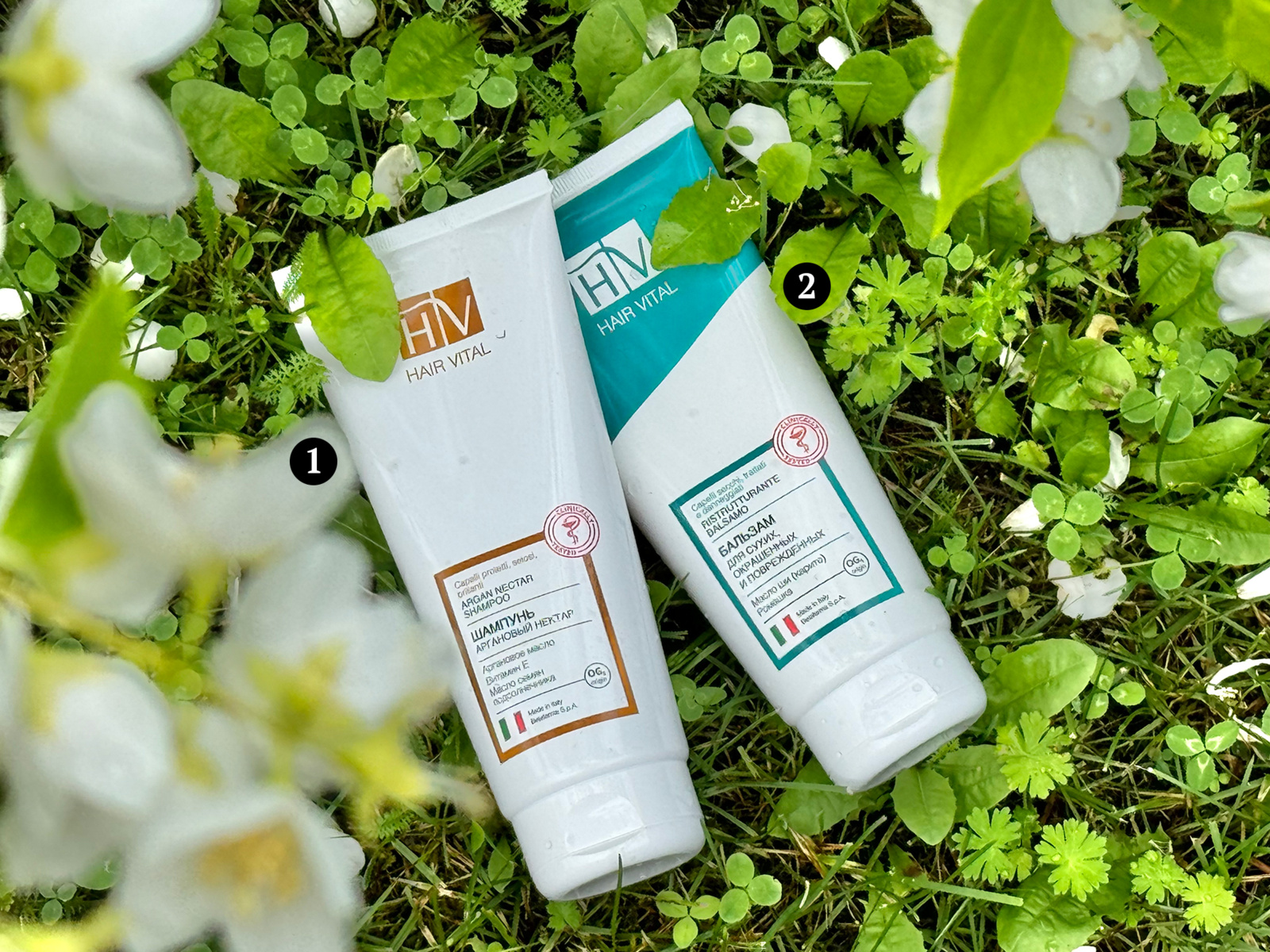 - Шампунь «Аргановый Нектар» с витамином Е и маслом семян подсолнечника, Hair Vital