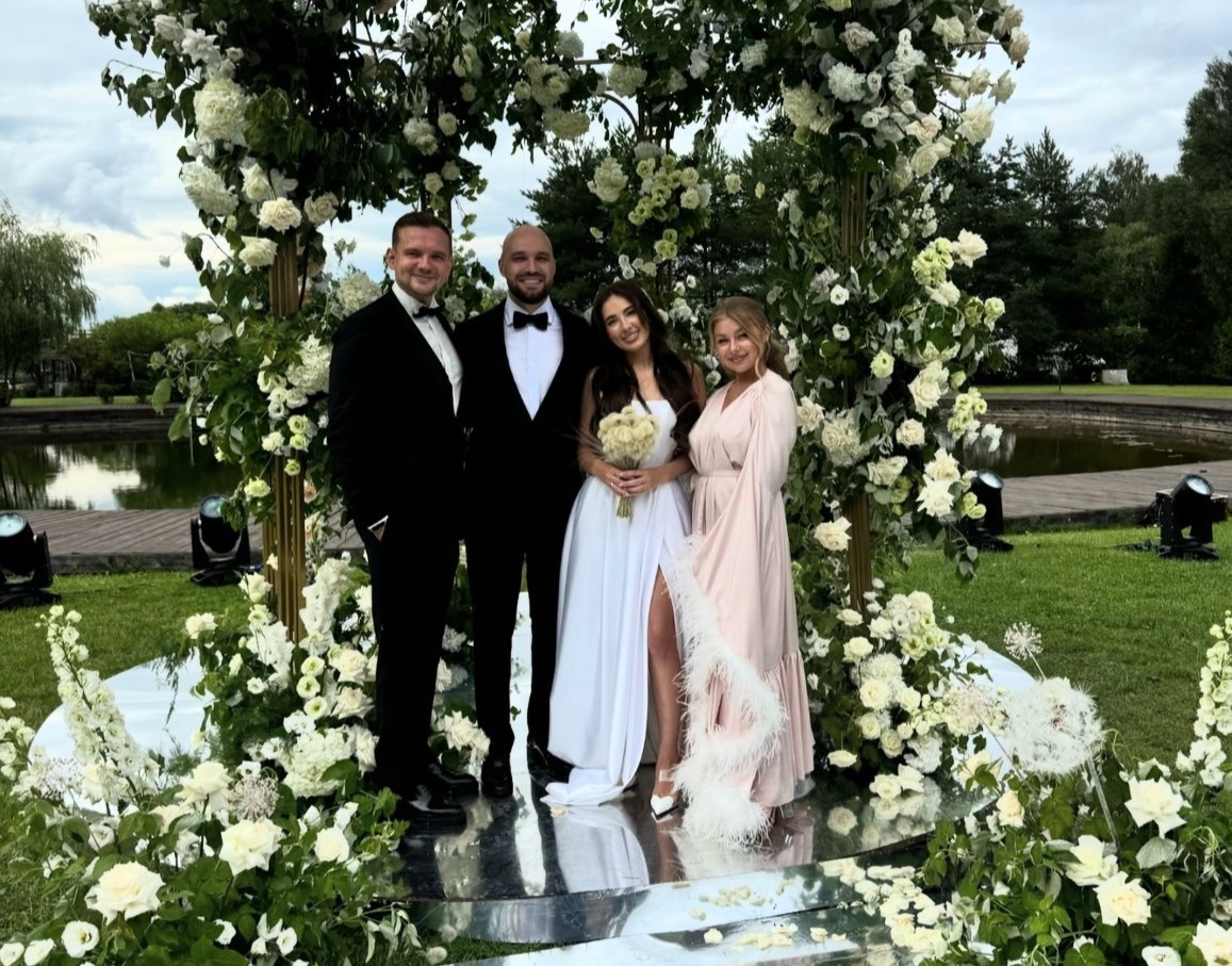 «Сегодня свадьба у Жекича Дубровского и Кати! Поздравляем молодых. Я, кстати, не большой любитель посещать свадебные торжества. Но сегодня было так трогательно, что даже комок в горле периодически застревал. Очень хорошая и искренняя пара. Желаю большой любви и согласия в новой семье», — написал Денис Мигаль, основатель и владелец автомобильного маркетплейса FRESH.