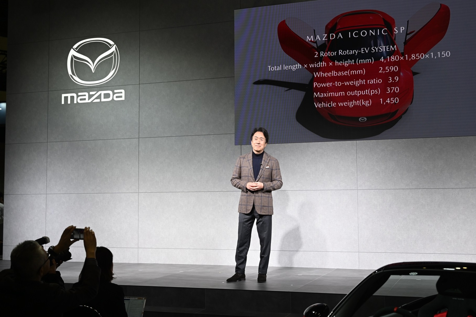 Основной причиной такого решения является успех недавнего концепта Iconic SP, который был представлен в прошлом году на выставке Japan Mobility Show. Соответственно, машина имеет все шансы стать серийной. Главная особенность модели — силовая установка, состоящая из двух роторных моторов конструкции Феликса Ванкеля. Однако ни один из них не соединён непосредственно с колёсами — они вращаются благодаря генераторам, которые уже питают электропривод колёс. Суммарная мощность установки составляет 365 лошадиных сил.