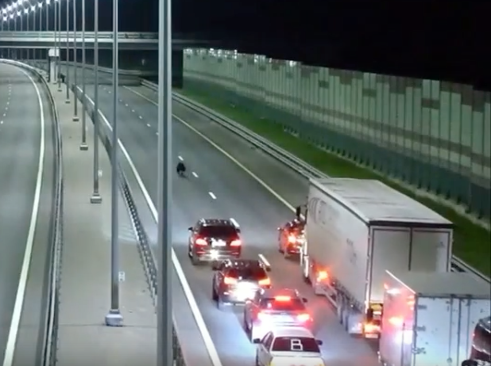 Маленький медвежонок умудрился собрать «самую милую пробку» на автомагистрали М-11 «Нева».