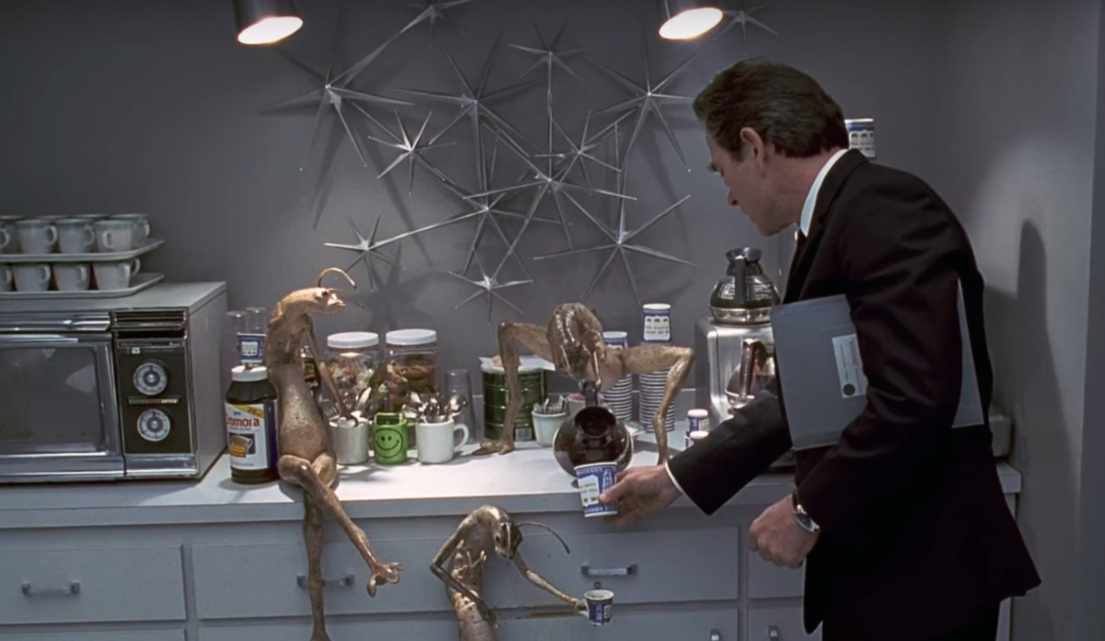 Главные герои спасают мир от наводнивших его пришельцев, разъезжая на чёрном Ford LTD Crown Victoria — полноразмерном заднеприводном авто, которое выпускалось Ford Motor Company c 1983 по 1991 год. Сложно представить автомобиль, более подходящий спецагентам из сверхсекретной организации, которую создали как раз для контроля инопланетян, оказавшихся в силу разных обстоятельств на нашей планете.