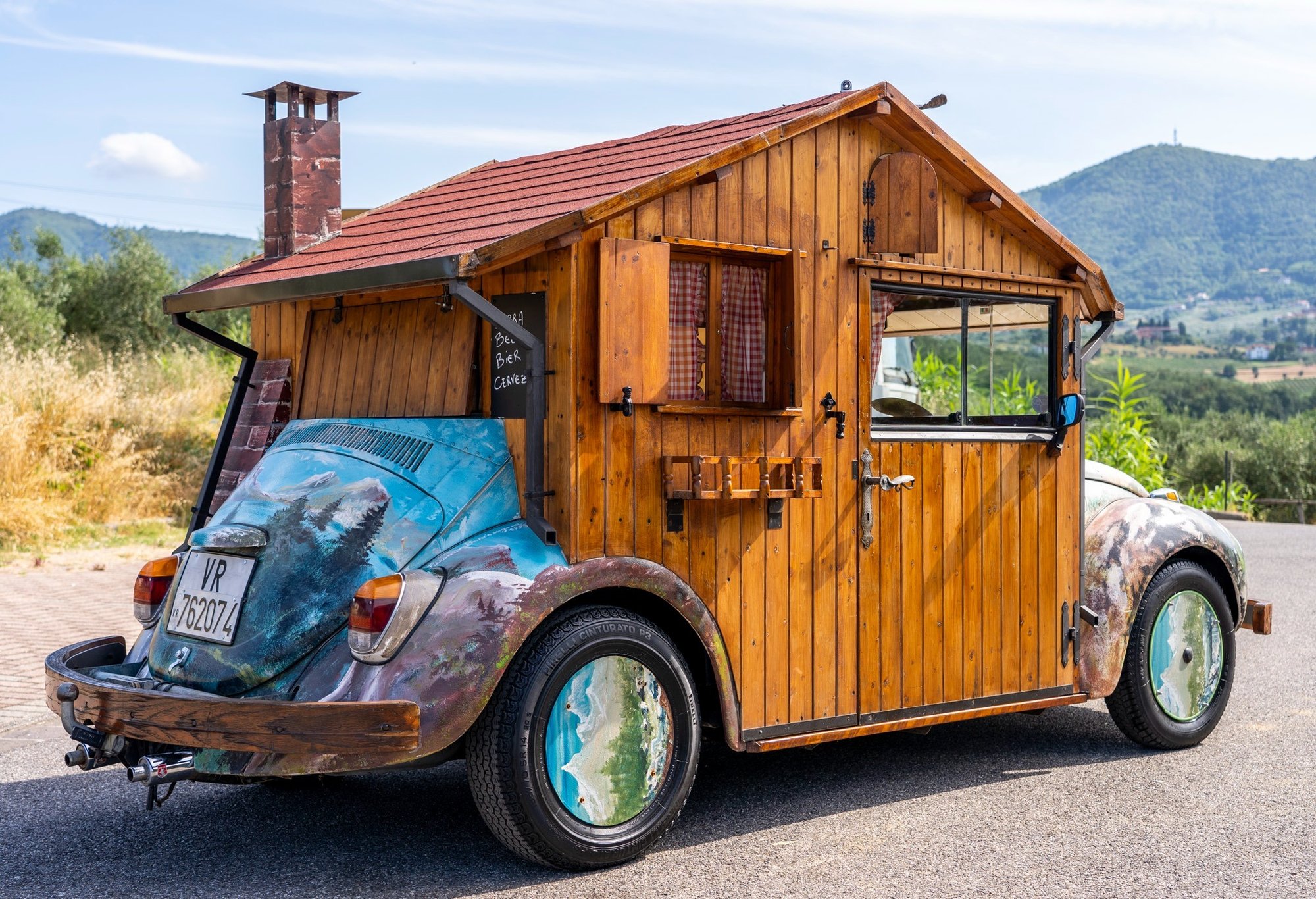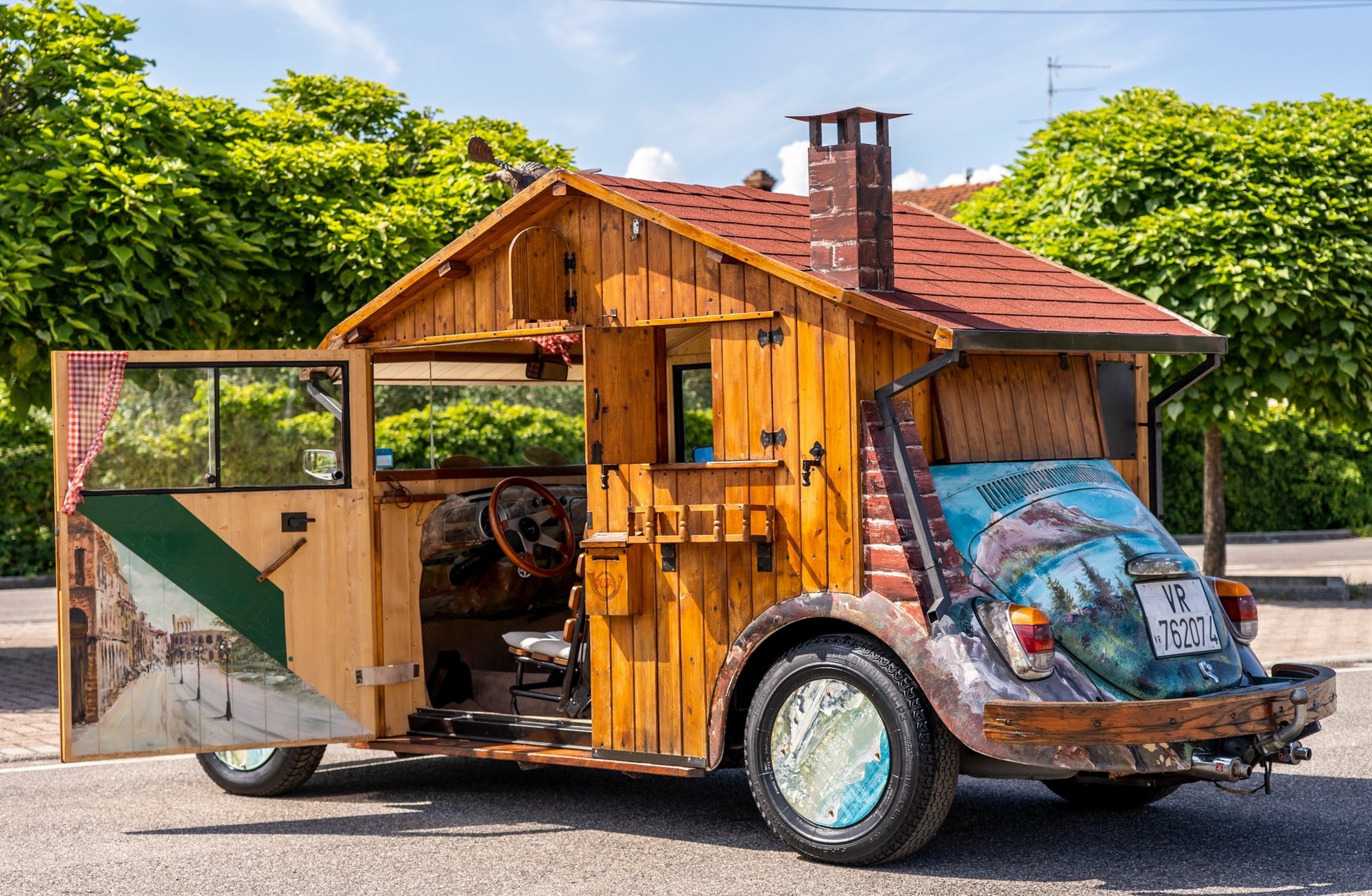 В Италии на аукцион выставили необычный деревянный «дом на колёсах», построенный на шасси Volkswagen Beetle 1970 года.
