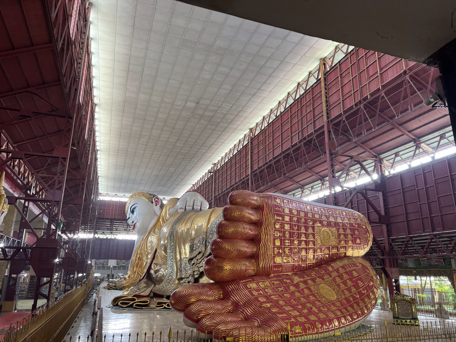 Ещё в Янгоне можно прогуляться по историческому центру и посмотреть на величественные здания колониальной эпохи, посетить Секретариат, именно он является одним из ключевых исторических объектов Янгона, полюбоваться старинной армянской православной церковью, а также зайти в парк Кандоджи. Ну и главная страсть всех туристов — крупнейший в Мьянме рынок сувениров Боджок (важно знать, что он закрыт по понедельникам и государственным праздникам). Но наша любовь — статуя Лежащего Будды Чак То Джи (Chauk Htat Gyi Reclining Buddha), считающаяся одной из самых больших в мире.