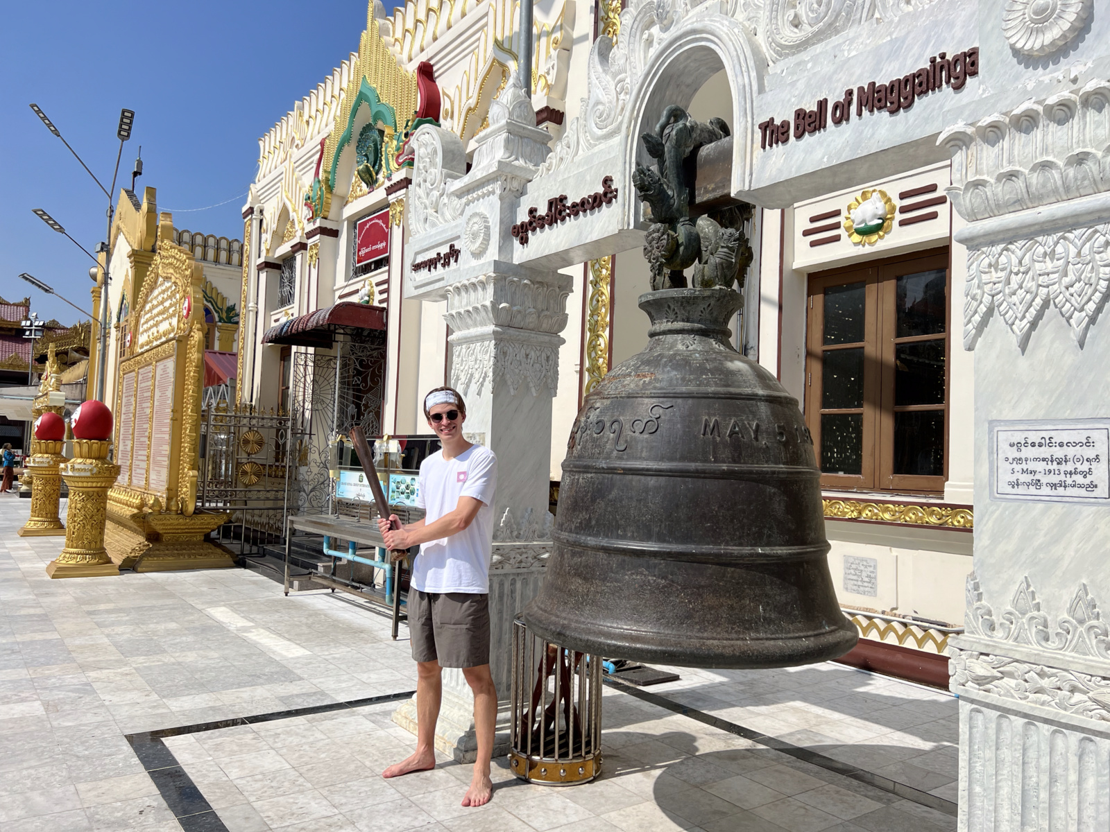 Именно в этом месте можно почувствовать какую-то невероятную энергию Мьянмы, посидеть рядом с Буддой, погрузиться в собственные мысли или же отключиться от внешнего мира, погрузившись в глубокую медитацию. Кстати, на входе нас спросили, не из Англии ли мы, и, получив отрицательный ответ, уточнили, из какой мы страны. Как позже поведал гид, англичан тут не очень-то жалуют. Остаётся лишь догадываться почему.