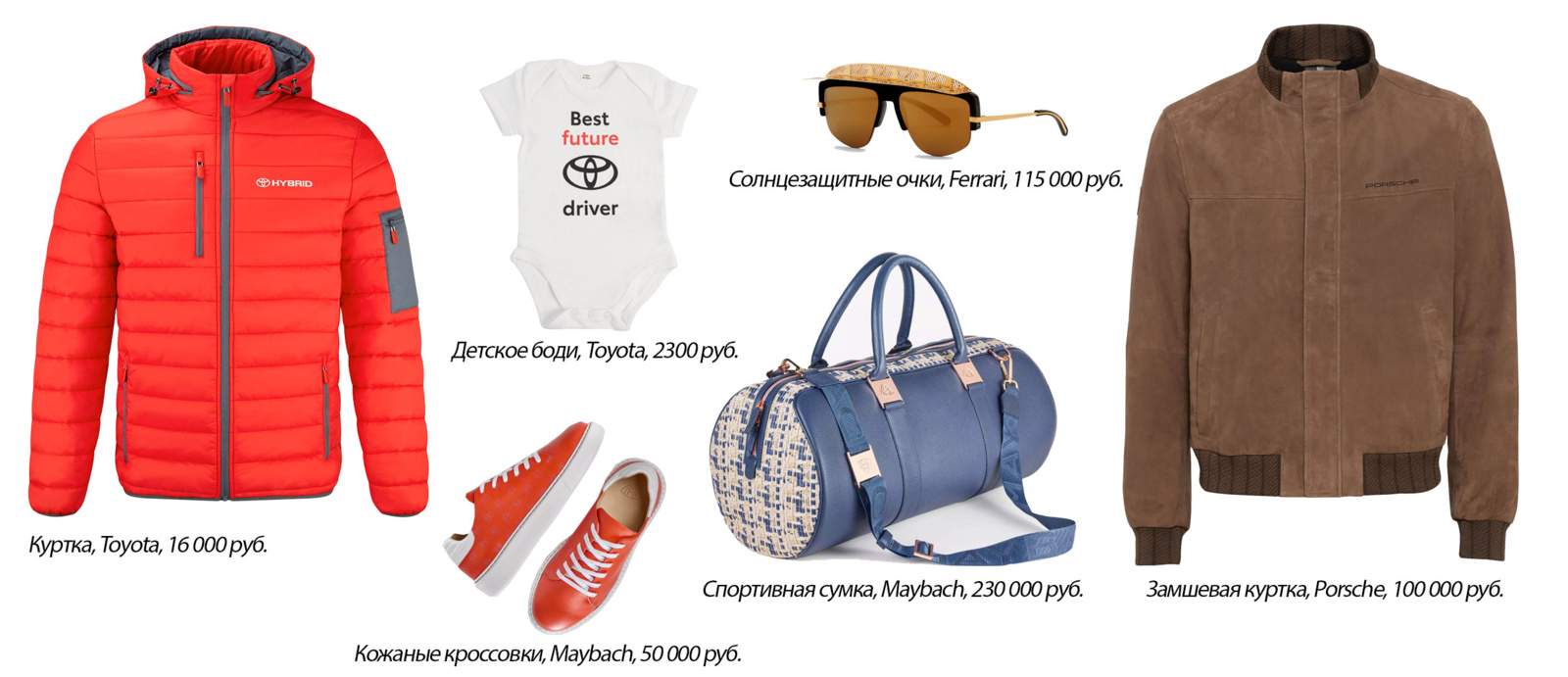 Фото: lifestyle.bmw.com, store.ferrari.com, shop.porsche.com, collection.toyota-europe.com, maybach-luxury.com, mclarenstore.com