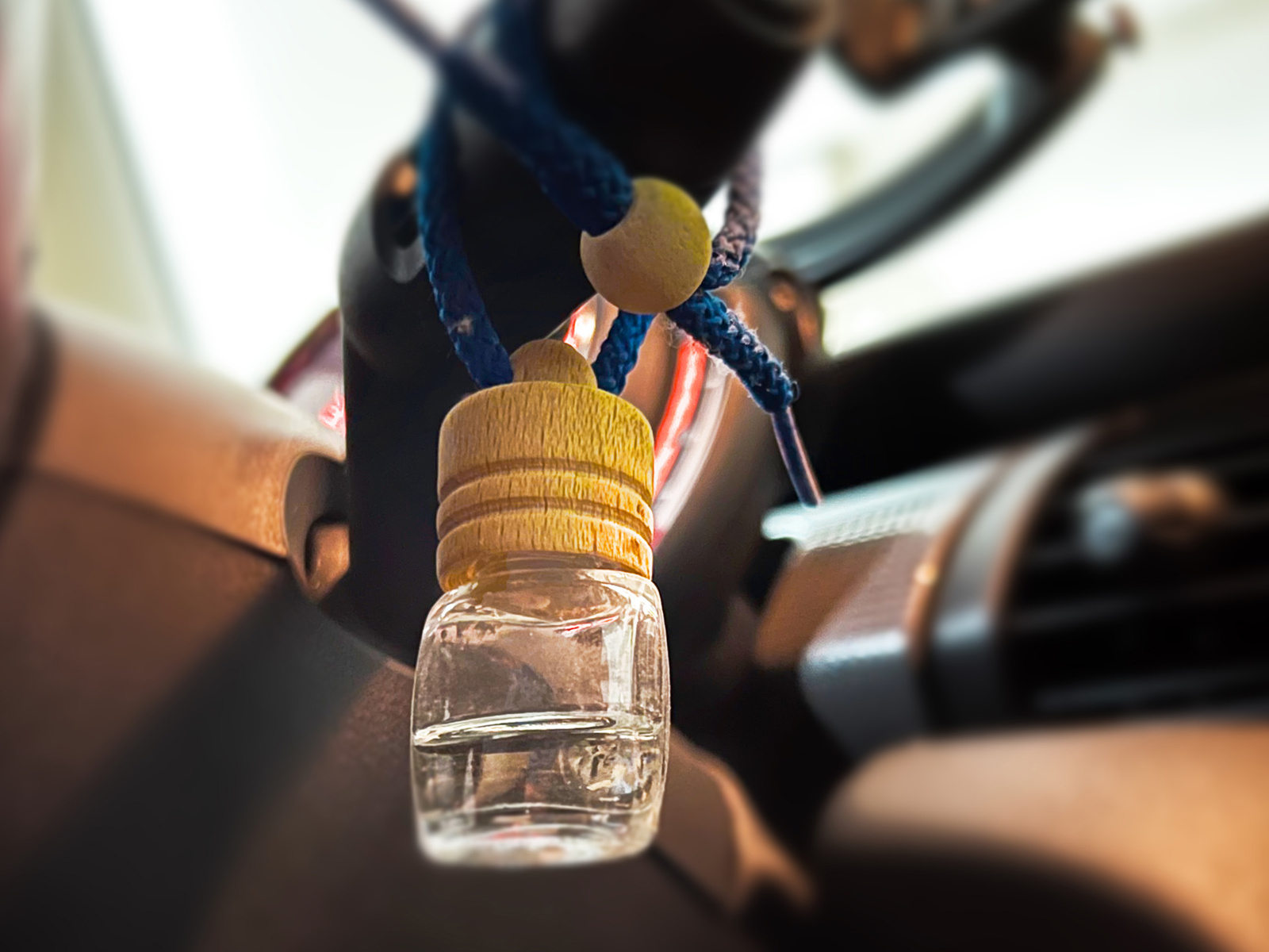 Следующая ступень развития «ёлочек» — компактные флаконы с парфюмированной жидкостью внутри. Они по-прежнему размещаются везде, куда их только можно повесить, но вот аромат уже распространяется иначе. Крышечка ёмкости контактирует с содержимым либо непосредственно, либо с помощью своеобразного «фитиля». Сама же она чаще всего деревянная, так что пропитывается жидкостью и «отдаёт» её запах в салон.