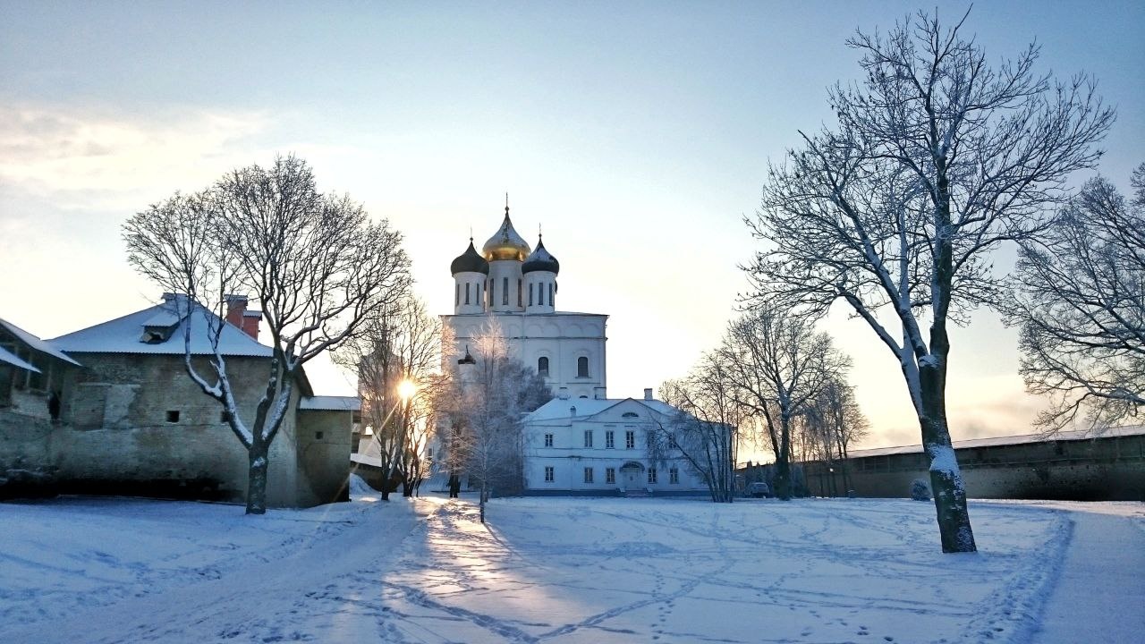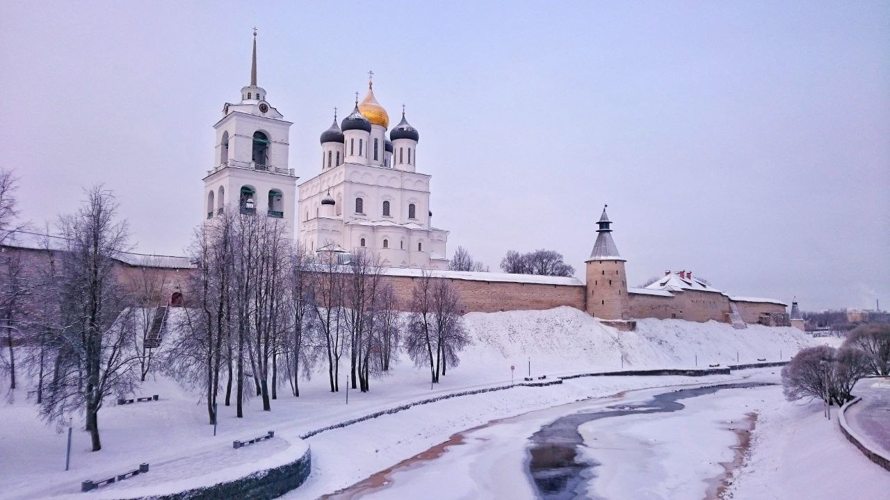 Знакомство с городом лучше начать с заложенного в 11 веке Псковского кремля — неприступного Крома, который предусмотрительно угнездился между реками Великая и Пскова. Когда-то крепость была окружена пятью кольцами стен с 40 башнями, самые высокие из них — Покровская и Гремячая. Обязательно дойдите до последней: говорят, под ней спит вечным сном царевна, а вокруг её гроба — бочки с золотом, их охраняет нечисть, гремя монетами — отсюда и название башни.