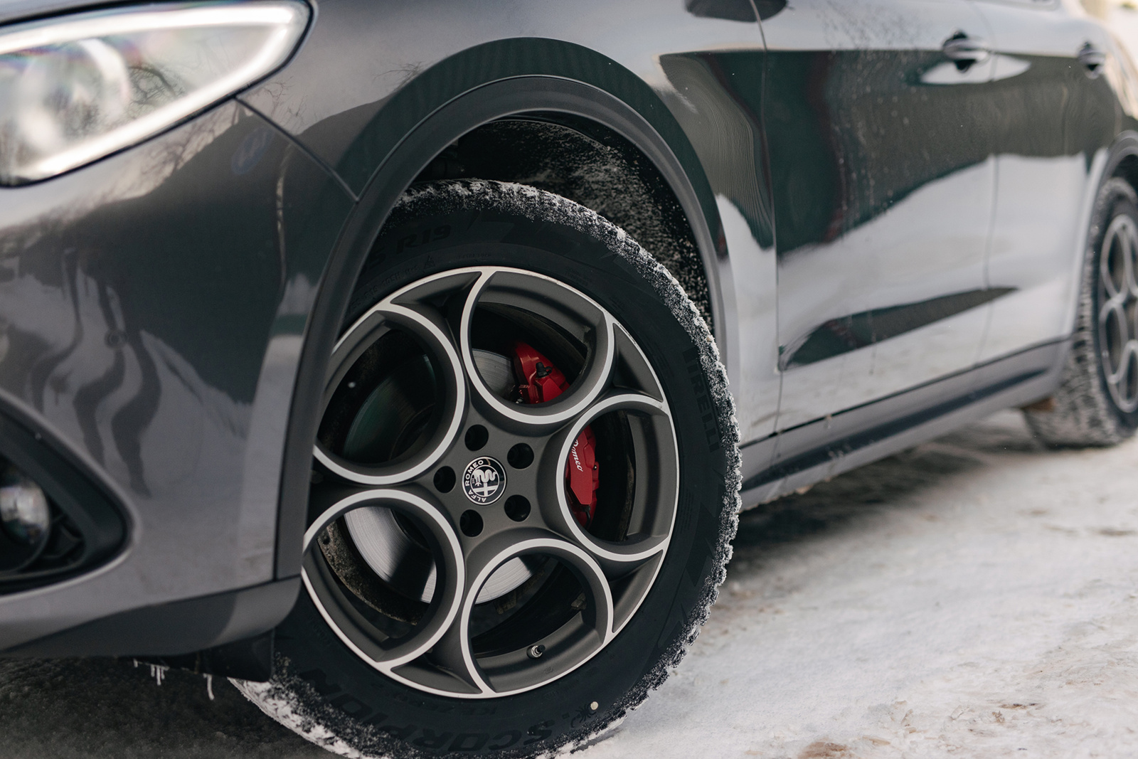 Оля: «Всю свою жизнь я избегала шипованной резины и кроссоверов, но рождение ребёнка в корне меняет жизнь, так что и предпочтения в выборе автомобиля слегка скорректировались. И если есть кроссовер, значит, путешествий за город точно не избежать. А какие поездки по заснеженным подмосковным дорогам без шипованный резины? Решение принято, и вот на Alfa Romeo Stelvio красуются новенькие Ice Zero от Pirelli. Итальянской машине — итальянскую резину!