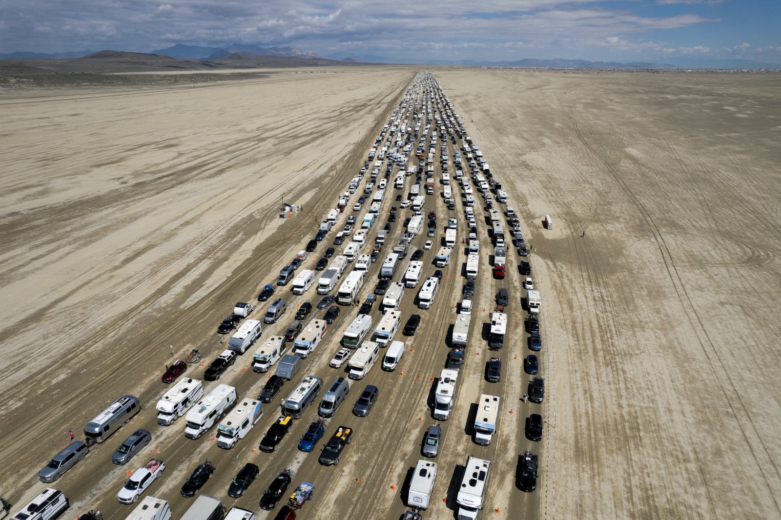В пустыне штата Невада образовалась многокилометровая пробка из участников музыкального фестиваля Burning Man.
