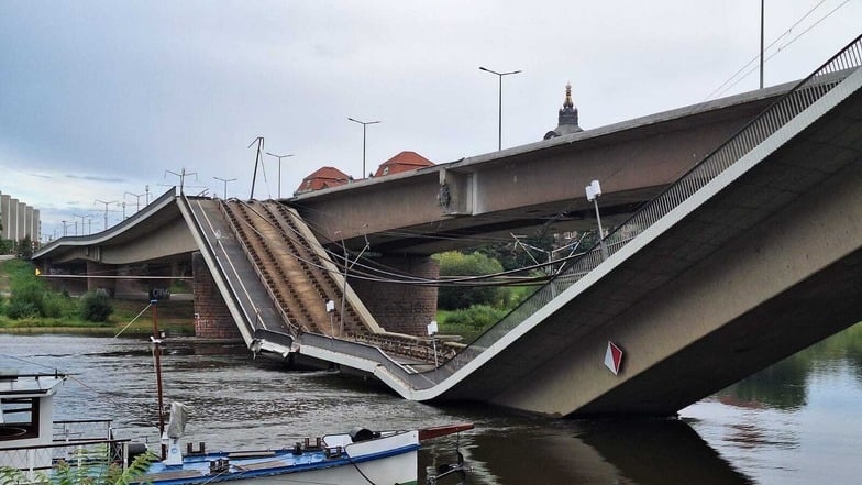 В Дрездене рухнула часть моста с трамвайными путями