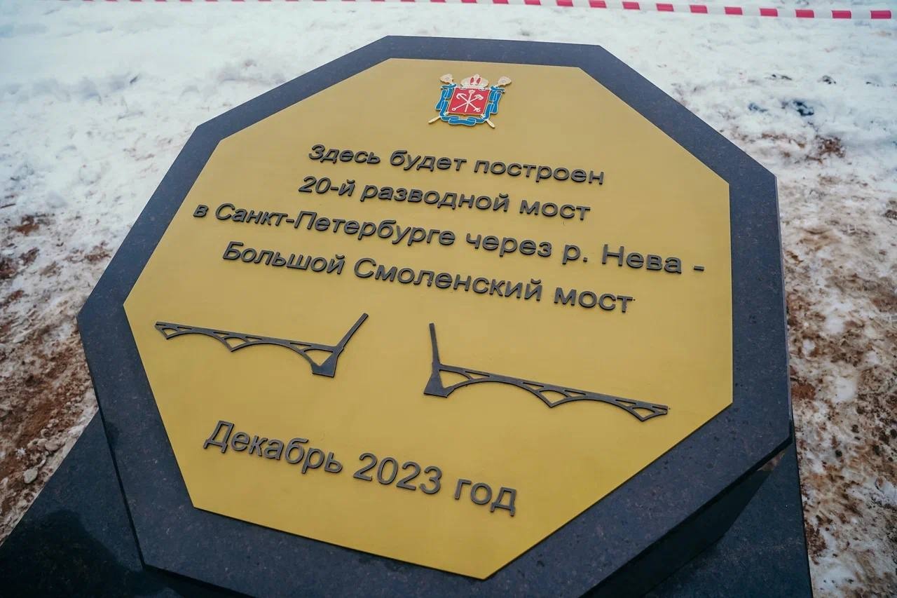 На Октябрьской набережной в Санкт-Петербурге установили закладной камень на месте строительства Большого Смоленского моста.