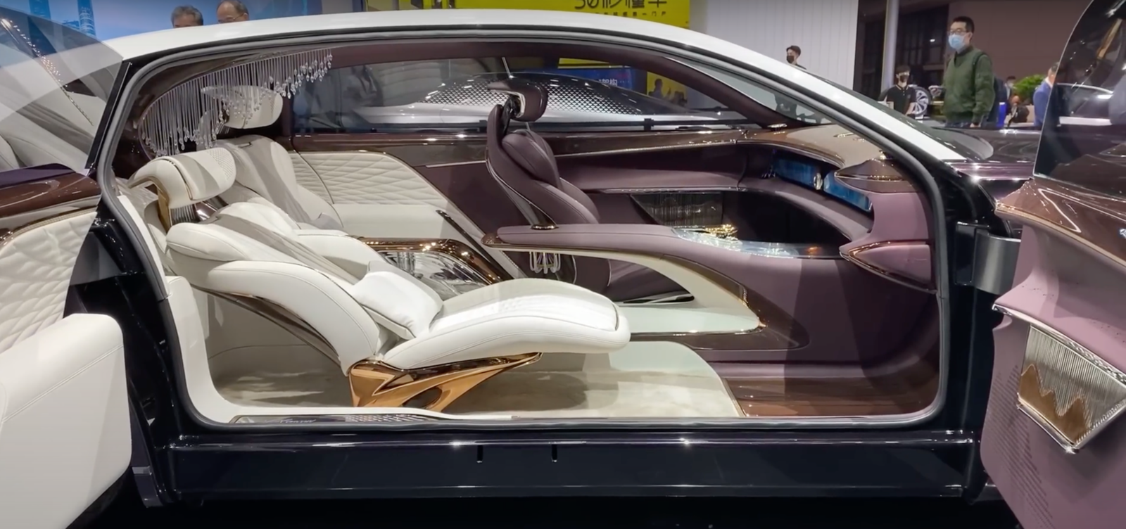 Об этой марке сегодня не слышал разве что ленивый, особенно учитывая тот факт, что машин из Поднебесной на российских дорогах становится всё больше. Тем любопытнее, что в 2021 году на Шанхайском автосалоне компания представила, мягко говоря, нетривиальный концепт, который довольно смело окрестили китайским Aurus. Кузов у фастбека двухцветный — белый верх и чёрный (на самом деле тёмно-серый) низ. Заднего стекла как такового нет, его место занимает панель с ромбовидным декором. Но самое интересное, пожалуй, внутри: на полу — шерстяные коврики, руль, как и переднее пассажирское кресло, отсутствует, зато есть люстра. Да, такая шикарная, как в отеле или фойе театра. Бренд обещал запустить машину в массовое производство ещё в 2023-м, но обещаниям не суждено было воплотиться в реальность. Как думаете, почему?