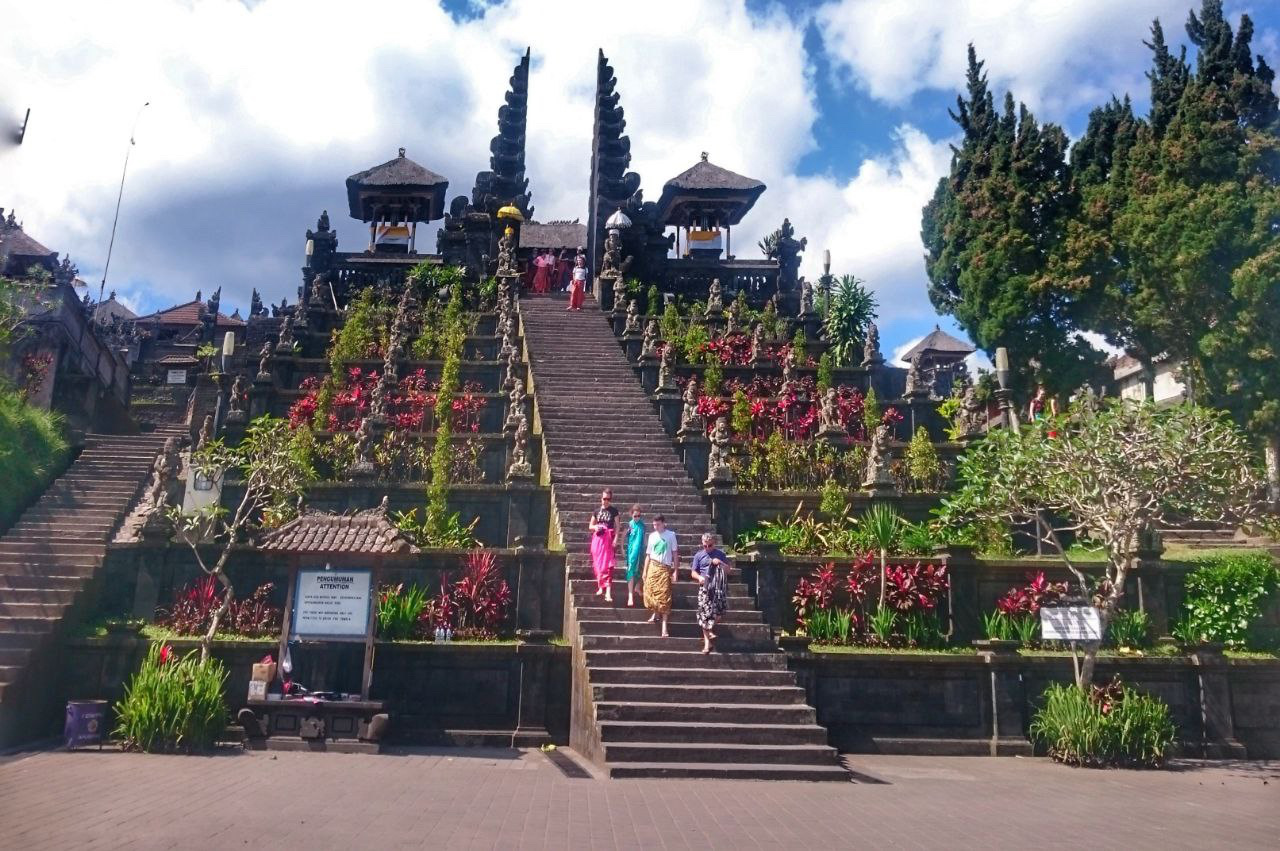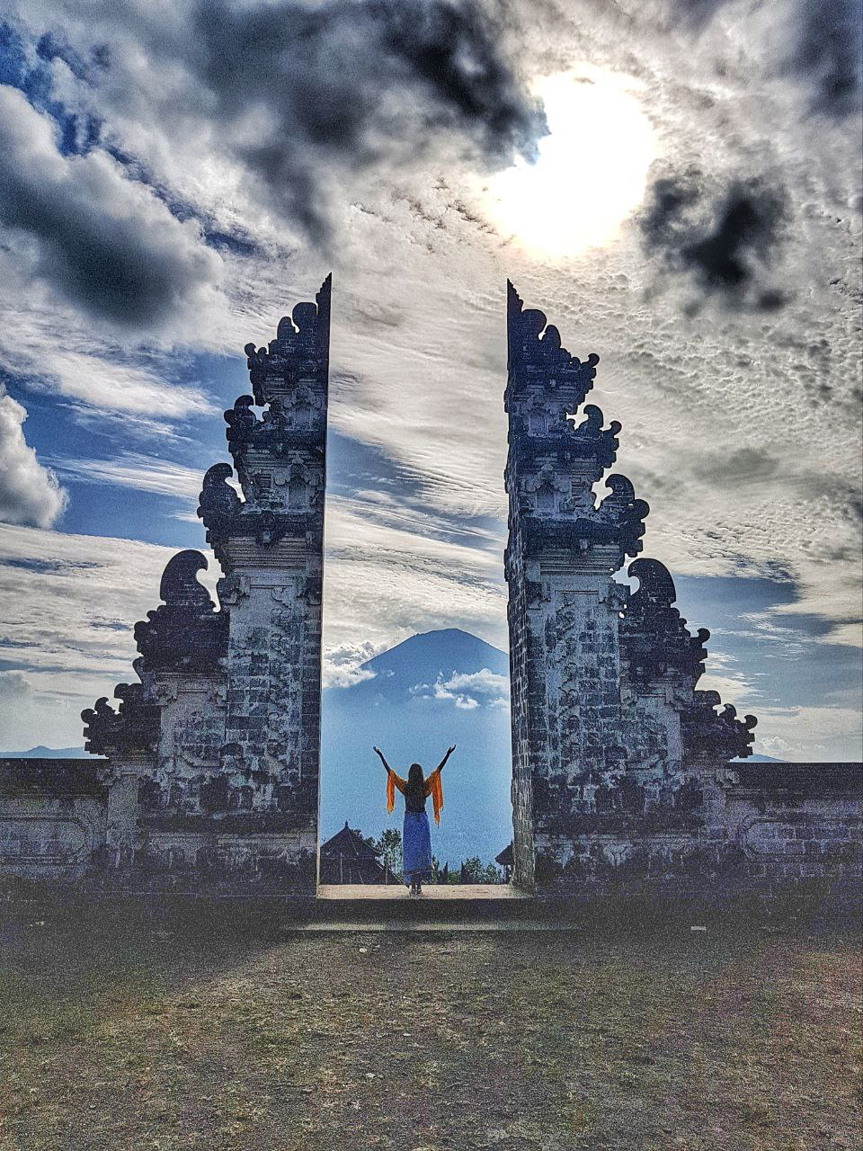Однако есть на острове место, откуда открывается совершенно «открыточный» вид на Агунг. Речь про горный храм Lempuyang, который в народе называют Вратами в небо. 1700 ступеней, вырубленных в скальном массиве, и три часа занимает путь до комплекса. Рекомендуется приезжать туда до обеда, так как потом Агунг «надевает» шапку из туч и увидеть вулкан будет затруднительно.