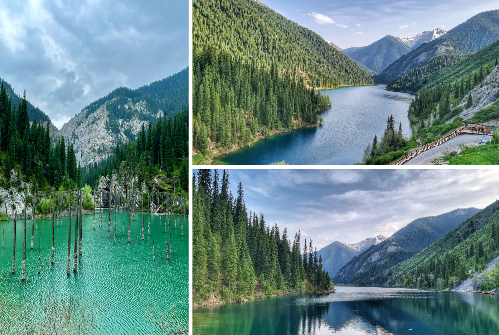 Высокогорные озёра — визитная карточка российского Алтая. В Казахстане же есть знаменитый массив Тянь-Шань, который тоже приютил в своих чертогах великолепные водоёмы. Взять хотя бы Большое Алматинское озеро на высоте 2500 метров: оно меняет цвет в зависимости от времени года — от изумрудного до бирюзово-голубого. А Кольсайскую цепочку озёр, расположенных в ущелье, называют голубым ожерельем Северного Тянь-Шаня. Задержаться в этом месте хочется надолго, чтобы проникнуться царящей вокруг безмятежностью, благо в деревнях есть гостевые дома (за сервисом не гонитесь, его здесь просто нет: скажите спасибо, что хоть уборная не на улице). Но настоящее чудо природы можно увидеть на озере Каинды, над поверхностью которого торчат голые стволы затопленных елей. Деревья лишь на первый взгляд выглядят безжизненными, словно мачты затонувших кораблей: говорят, под водой прекрасно сохранились и ветви, и зелёные иголки.
