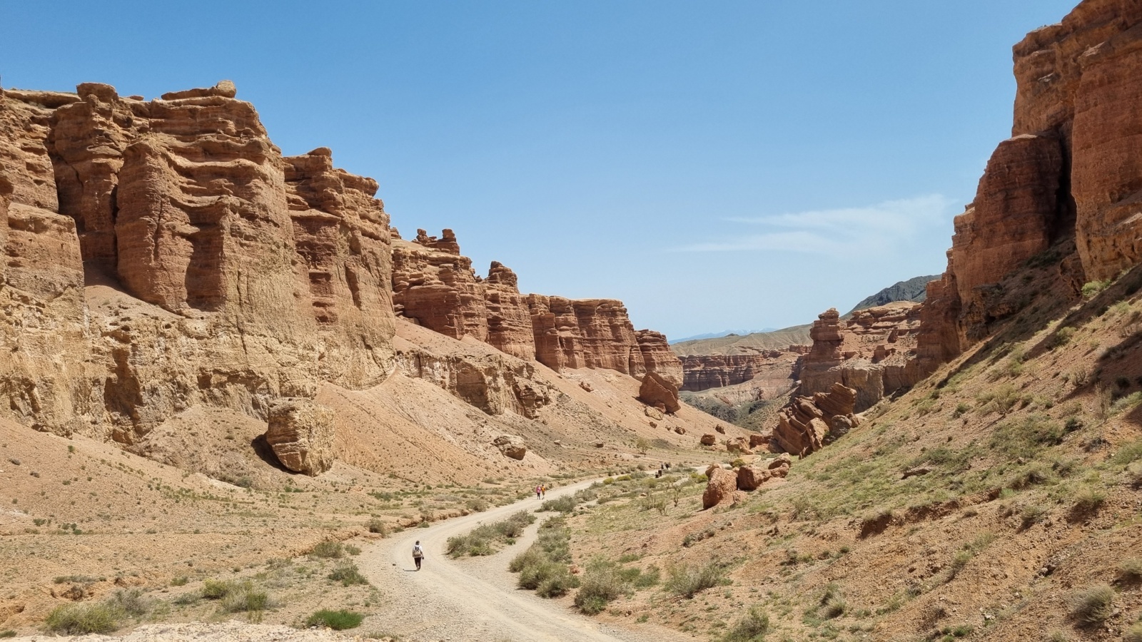 Паркуемся на верхней площадке — и вперёд! Справа и слева гигантские скалы причудливых форм возвышаются, над головой солнце палит да беркут парит, дорога за поворотом теряется, а вы, совсем как Индиана Джонс, идёте в поисках, конечно, не Святого Грааля, но воды, что тоже очень ценно во все времена. Пункт назначения — роща на берегу реки Чарын, где можно перевести дух и послушать легенду о том, как в одном из ущелий с наступлением темноты живущие там ведьмы заманивают задержавшихся туристов на высокие уступы и сбрасывают оттуда. Не страшно?