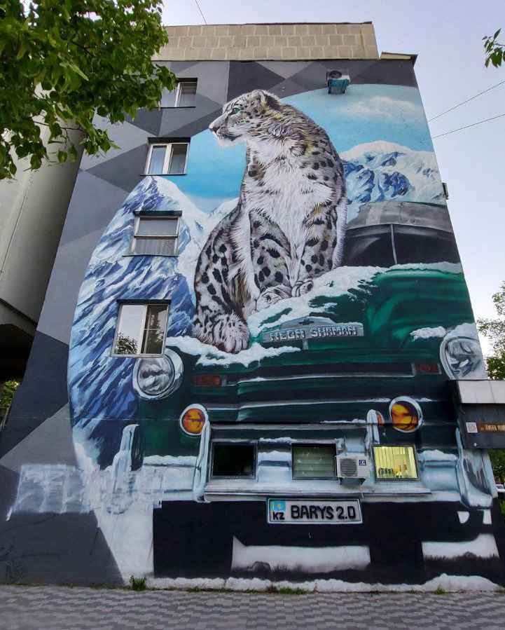 Следующее наблюдение — обилие граффити (тут нам вспомнился Берлин). Невзрачные серые фасады домов, построенных ещё при Сталине, Хрущёве и Брежневе, за последние 10 лет превратились в яркие холсты. Казахстанский стрит-арт зародился именно в Алматы: впервые пробовавшие здесь перо художники теперь известны по всему миру, а алматинцы буквально пылинки сдувают с городских муралов. Наглядный тому пример — изображение фантастического снежного барса-символа города, которого однажды компания Coca-Cola нагло закрасила, чтобы прорекламировать свои напитки. Что тут началось! Чуть ли не народное восстание! Обидчикам пришлось извиниться и бережно восстановить граффити. В общем, прогуляйтесь по улицам и постарайтесь найти как можно больше настенных картин — не пожалеете!