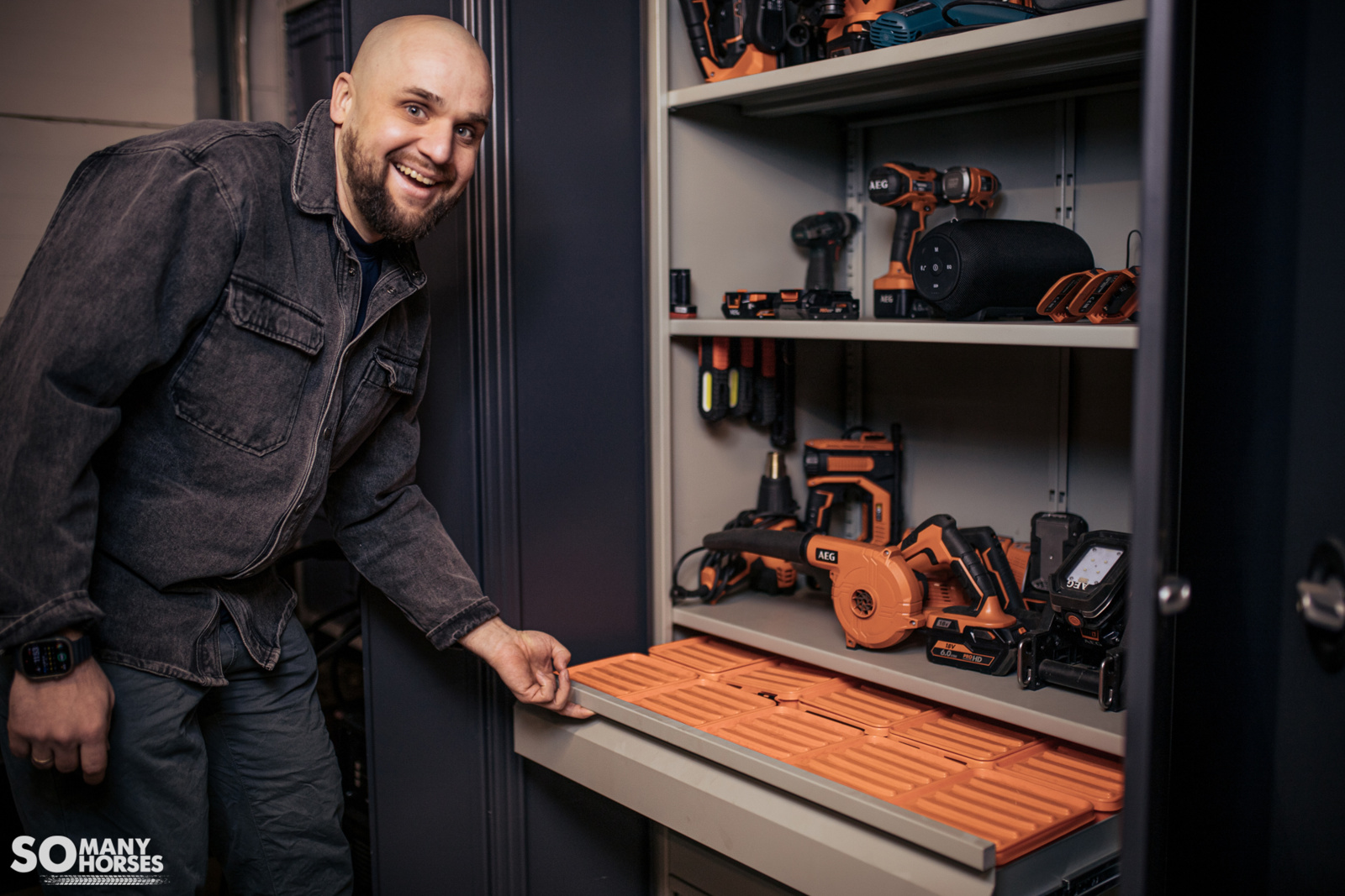 У нас в сервисе всегда чисто — обычно натираем всё, поддерживаем порядок. Очень удобно, когда всё подписано и структурировано. Вещи должны быть на своих местах. Поймал себя на мысли, что это у меня началось с просмотра фильма «Я — легенда». Когда герой Уилла Смита выходил из дома, он брал с собой провиант. И вот он открывает шкаф, и сразу видно, что всё разложено по полочкам. Просто кадр, который прямо засел у меня в мозгу, и я такой: «Блин, круто!»